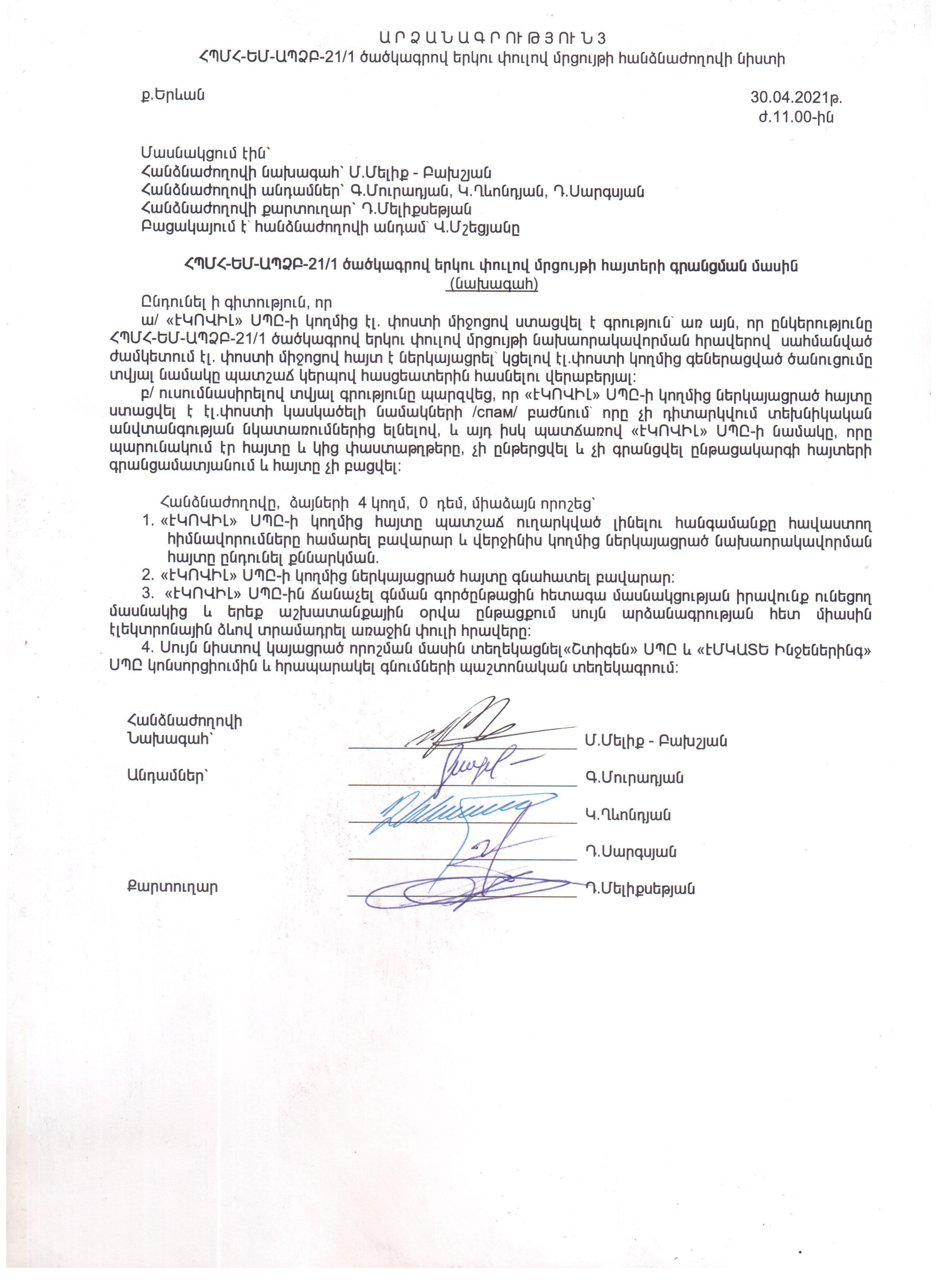 (Հրապարակված է 2021-04-30 15:05:14-ից անժամկետ)
